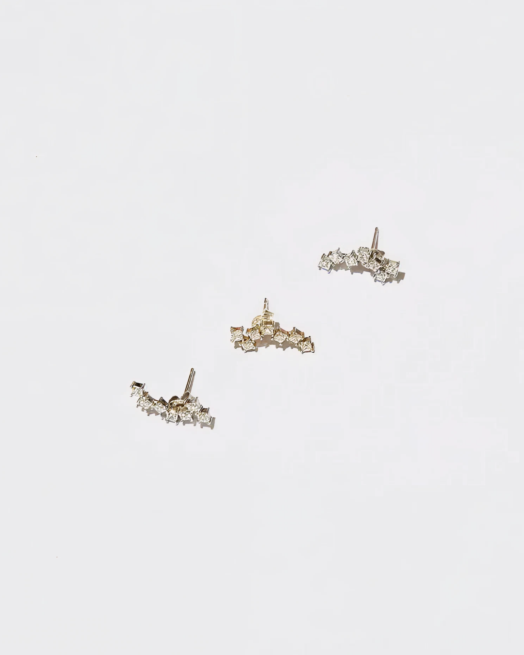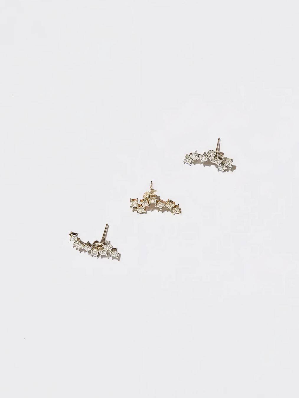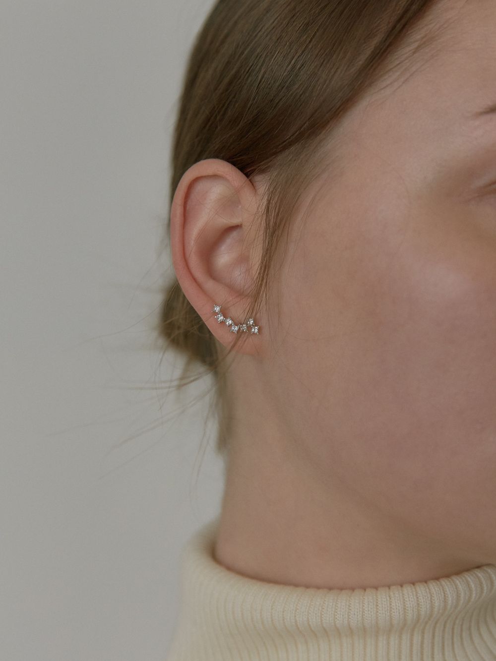 SHINY LINE 귀걸이입니다. 별빛 한 점을 귀에 걸어둔 듯, 작지만 선명하게 반짝입니다. 큐빅 셋팅만으로 완성한 미니멀한 디자인이라 데일리로 부담 없이 착용할 수 있습니다.