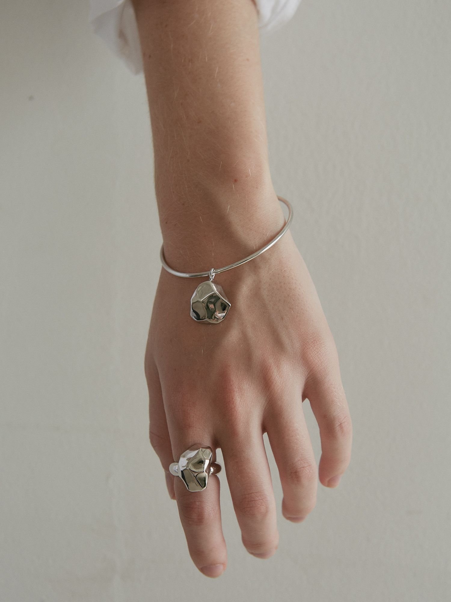 seven magic mountains에 영감을 받아 제작하였습니다. 은에 백금 도금으로 이루어져 있습니다. 돌의 자연적인 굴곡과 모양을 총 14가지로 제작하여 구성한 컬렉션입니다. 무게감 있는 링으로 제작되어 포인트를 더합니다.