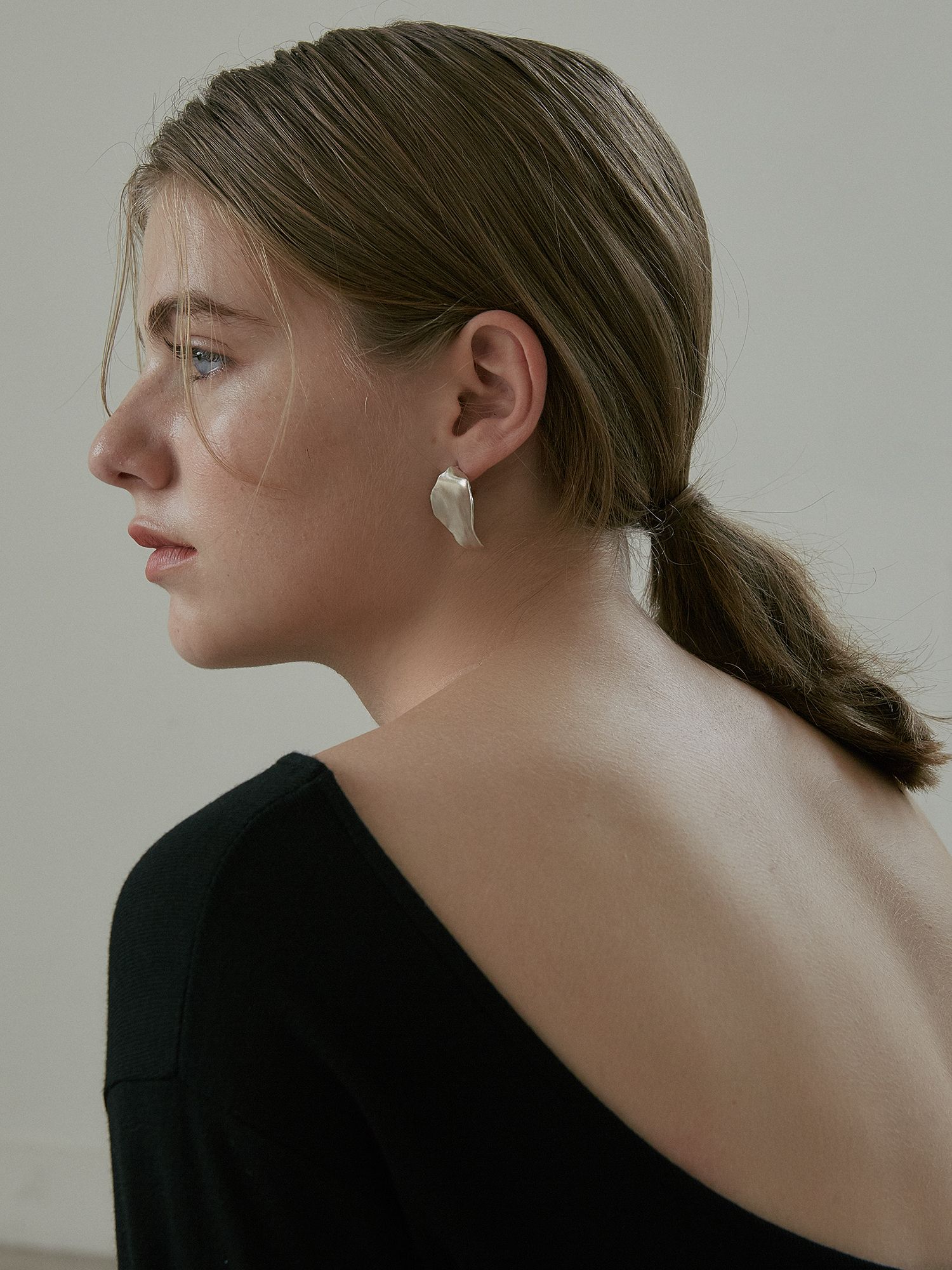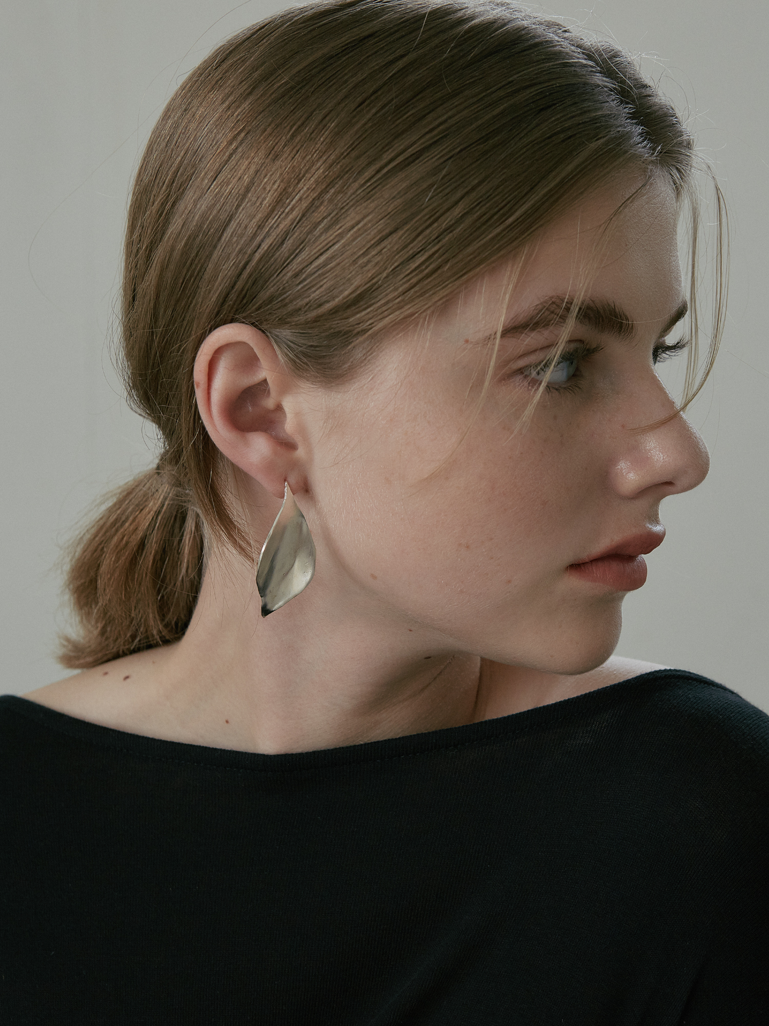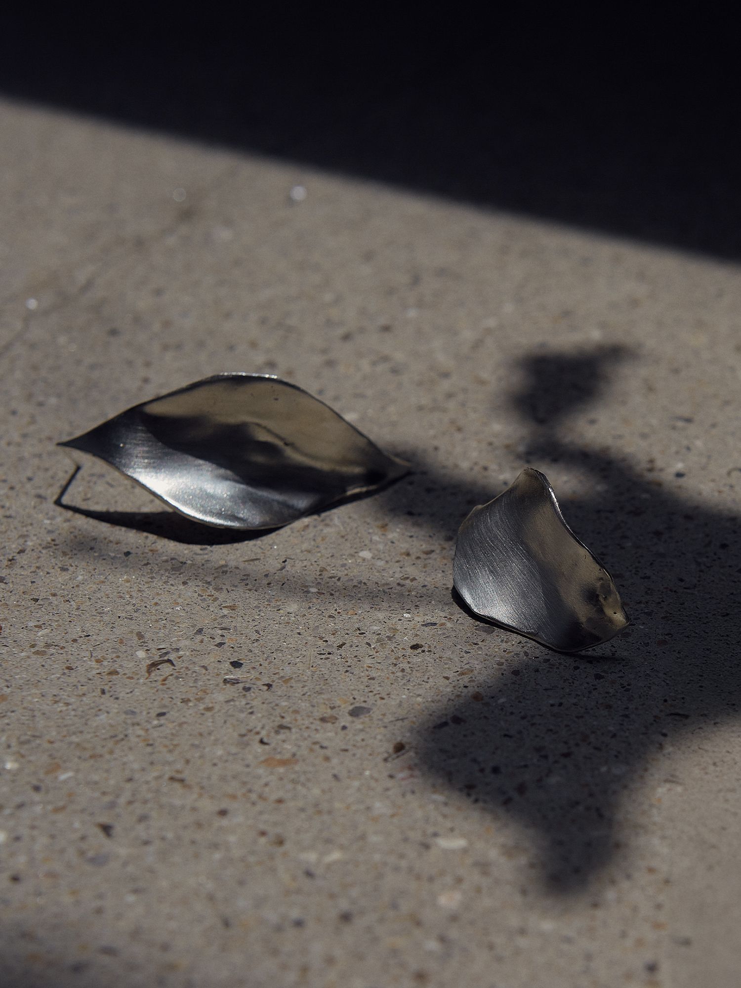 나뭇가지 모양으로 만든 링 귀걸이입니다. 잎과 가지의 모양과 텍스처를 금속에 작업하였습니다.