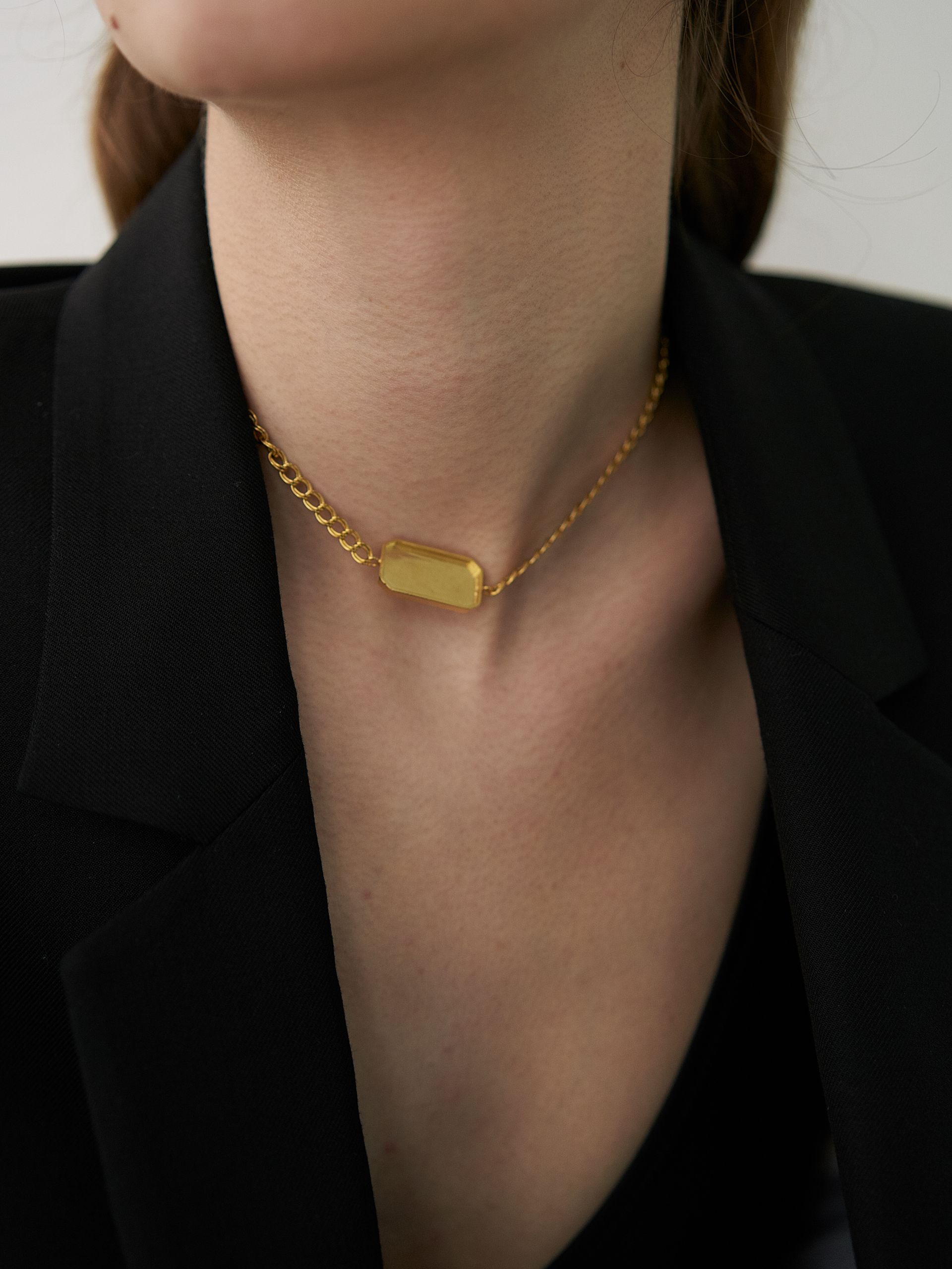 매끈한 플레이트가 목선 위에서 단정한 포인트가 되는 네크리스입니다. 각도에 따라 은은하게 반사되는 면이 룩을 정리해주고, 과하지 않게 존재감을 남깁니다. 단독으로는 깔끔한 시그니처로, 레이어링에서는 중심을 잡아주는 베이스로 활용하기 좋습니다.