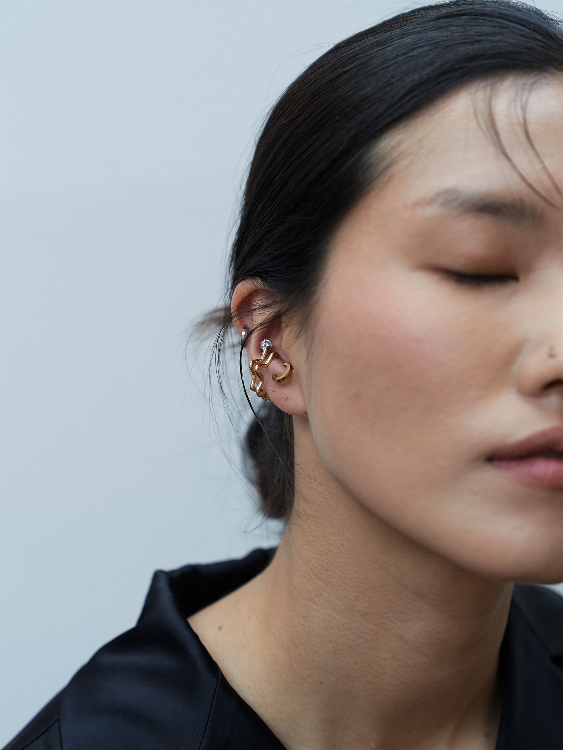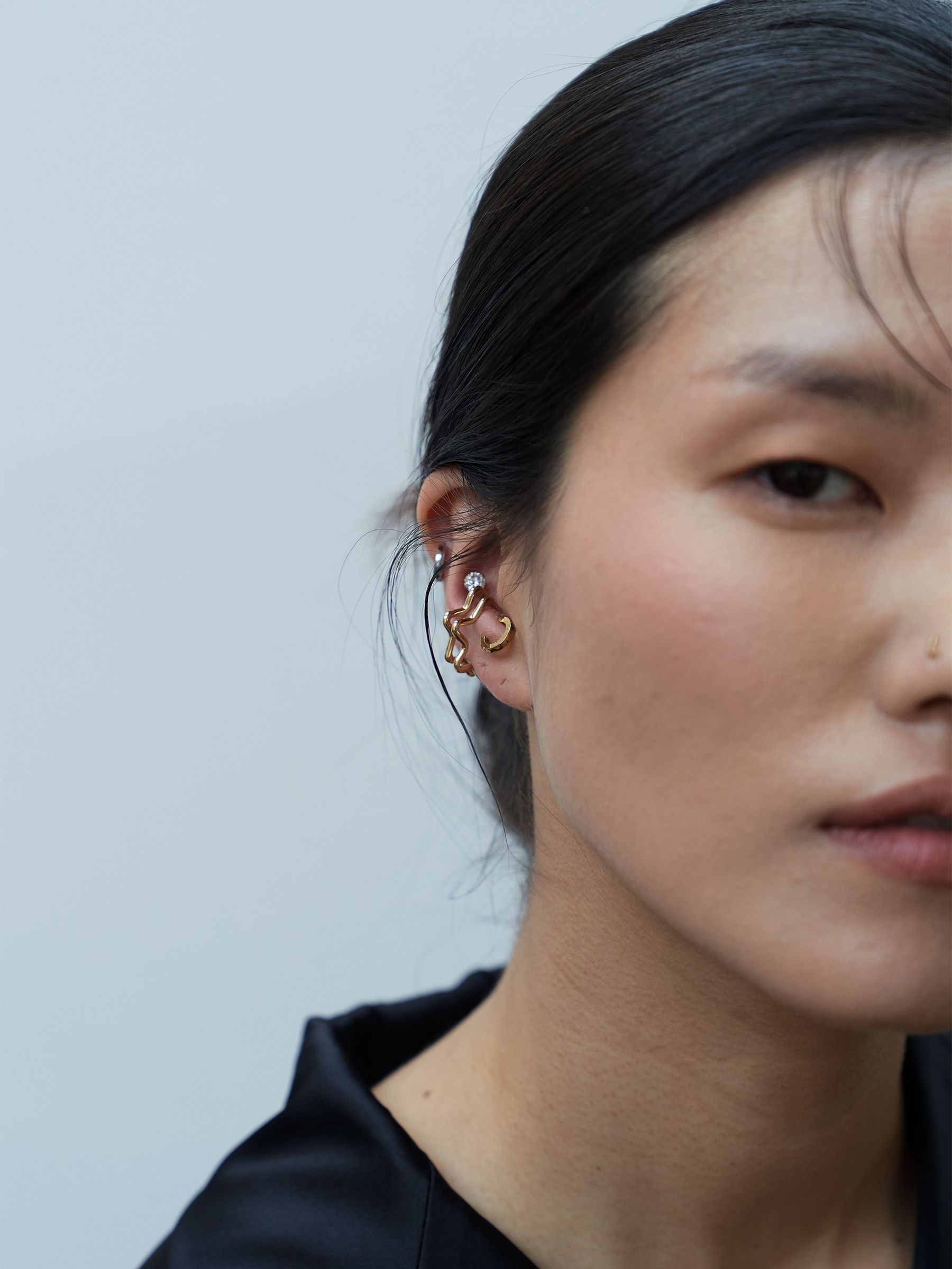 별 모양을 모티브를 부드러운 라인으로 풀어낸 미니 이어커프입니다.